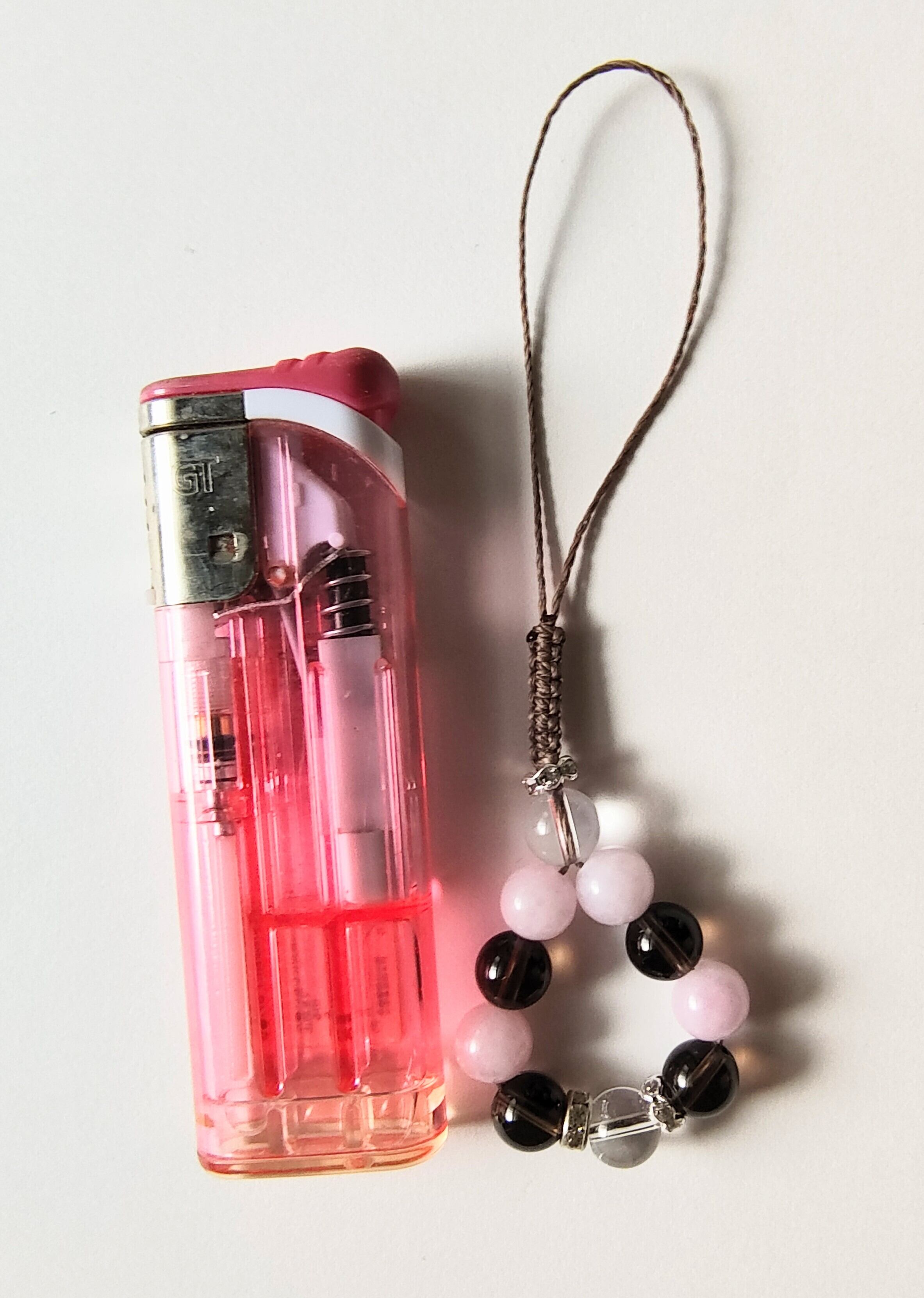 心をやさしく包み込む淡いピンクのクンツァイトと、大地のような安定感をもたらすスモーキークォーツを組み合わせた癒しのチャーム。