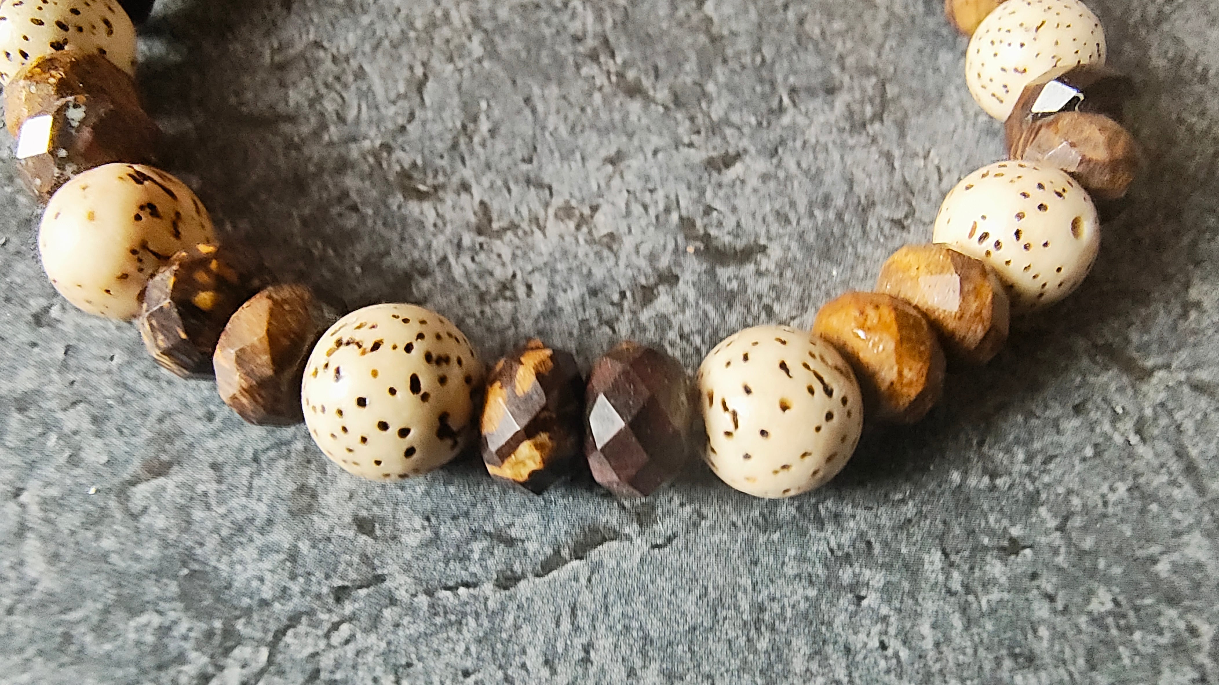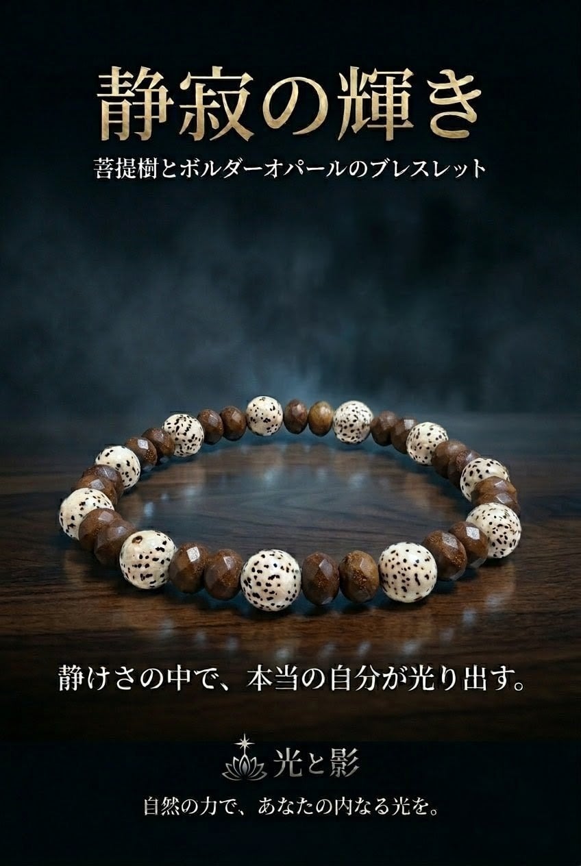 内側から静かに輝くボルダーオパールを組み合わせた一本。